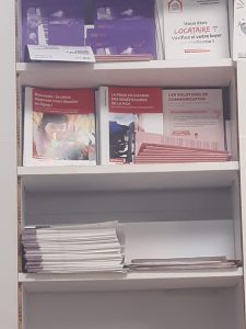 Je patiente donc, commence à lire mon magazine emporté pour cette attente prévue. Au bout d’un moment, ayant lu plusieurs articles du magazine, je regarde le présentoir avec les différents fascicules de la métropole pour faire une pause. L’un attire mon regard ; il s’intitule « Les solutions de communication ». Je me lève pour me dégourdir un peu les jambes (à ce stade, ça ne faisait jamais que 45 minutes que je patientais) et en savoir plus sur ces solutions. Et quelle ne fût pas ma surprise de voir qu’il était dit que la métropole avait opté pour la solution Accéo à distance ou en face-à-face aux guichets d’accueil et qu’il y avait aussi la solution boucle magnétique. Bon, je regarde vers les guichets et je ne vois aucun dispositif cité. Les deux personnes de l’accueil recevaient encore du monde en flot continu, donc je me suis abstenue de pointer l’incohérence auprès d’elles.