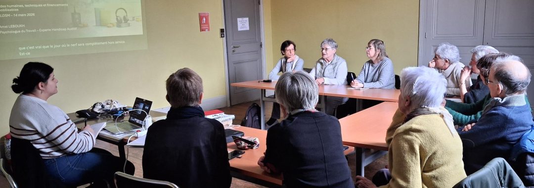 Le 14 mars, nous étions 12 adhérents à participer à l’animation prévue par Amel, psychologue du travail, sur les aides auditives et financières. La séance a été rendue accessible par le biais de deux moyens techniques : la transcription écrite de la parole projetée sur l’écran, et une liaison « bluetooth » avec un micro déporté pour les personnes dotées d’un appareil auditif de marque Phonak.